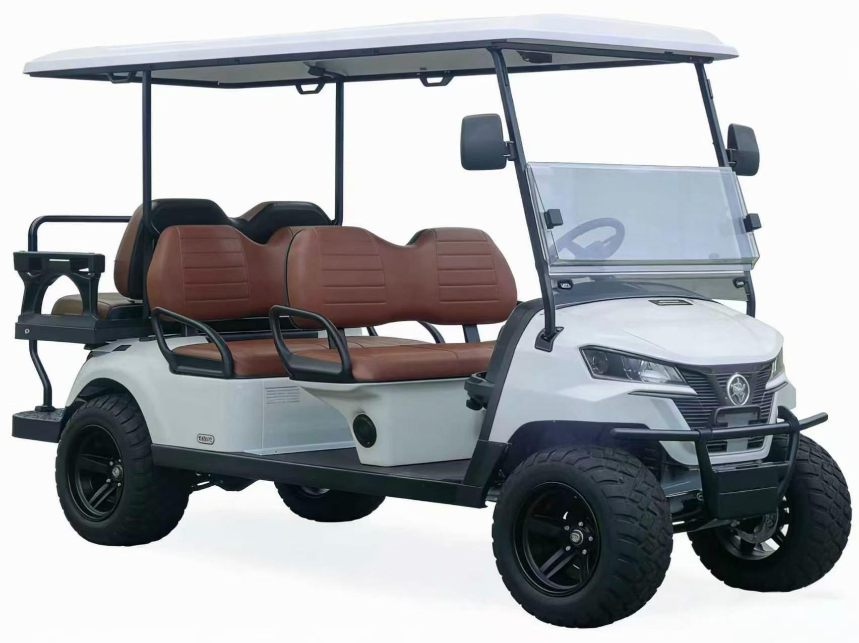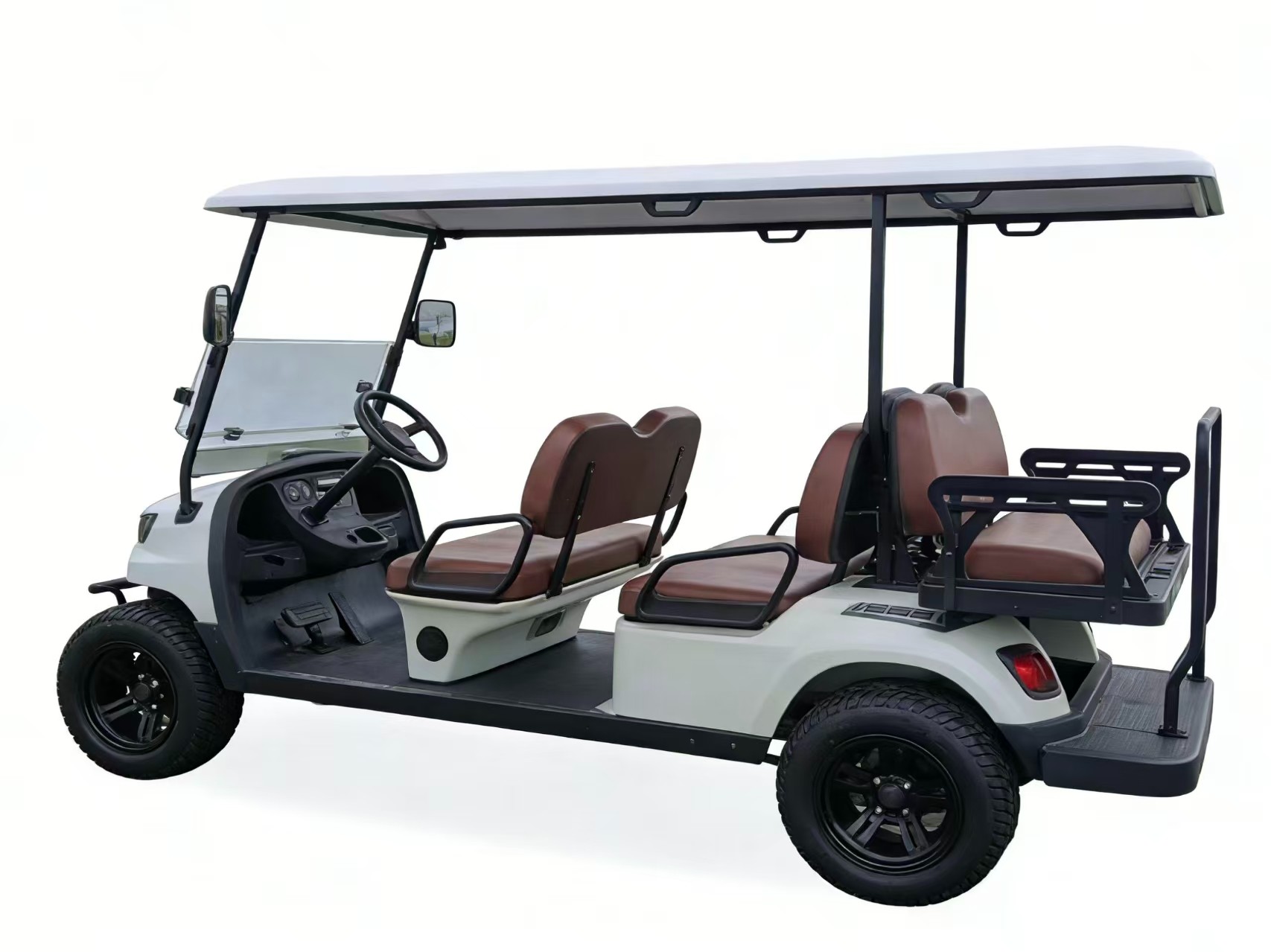 Generous Seating Capacity: Fits up to 6 people (4 primary seats + 2 rear seats), with comfortable brown headrest-equipped seats for extended rides.