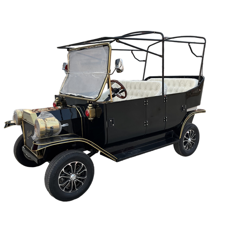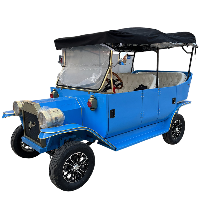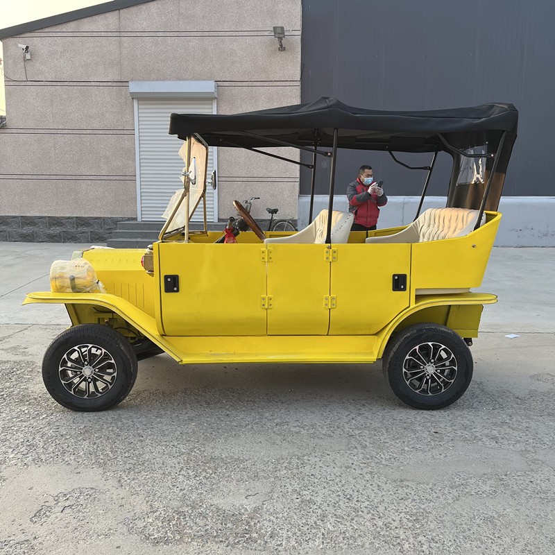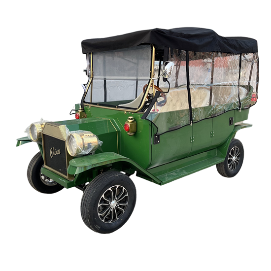 This retro-style electric sightseeing vehicle is a pure electric model designed for low-speed, on-site transportation and sceni carea shuttles. It features a retro design reminiscent of classic old cars, can meet daily operating needs, and its electric drive offers the advantages of quiet operation and environmental friendliness.